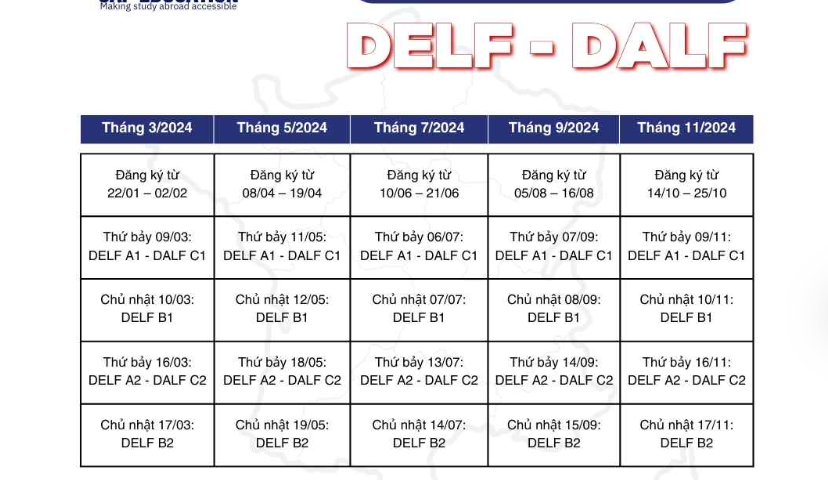 • Lịch thi DELF năm 2024